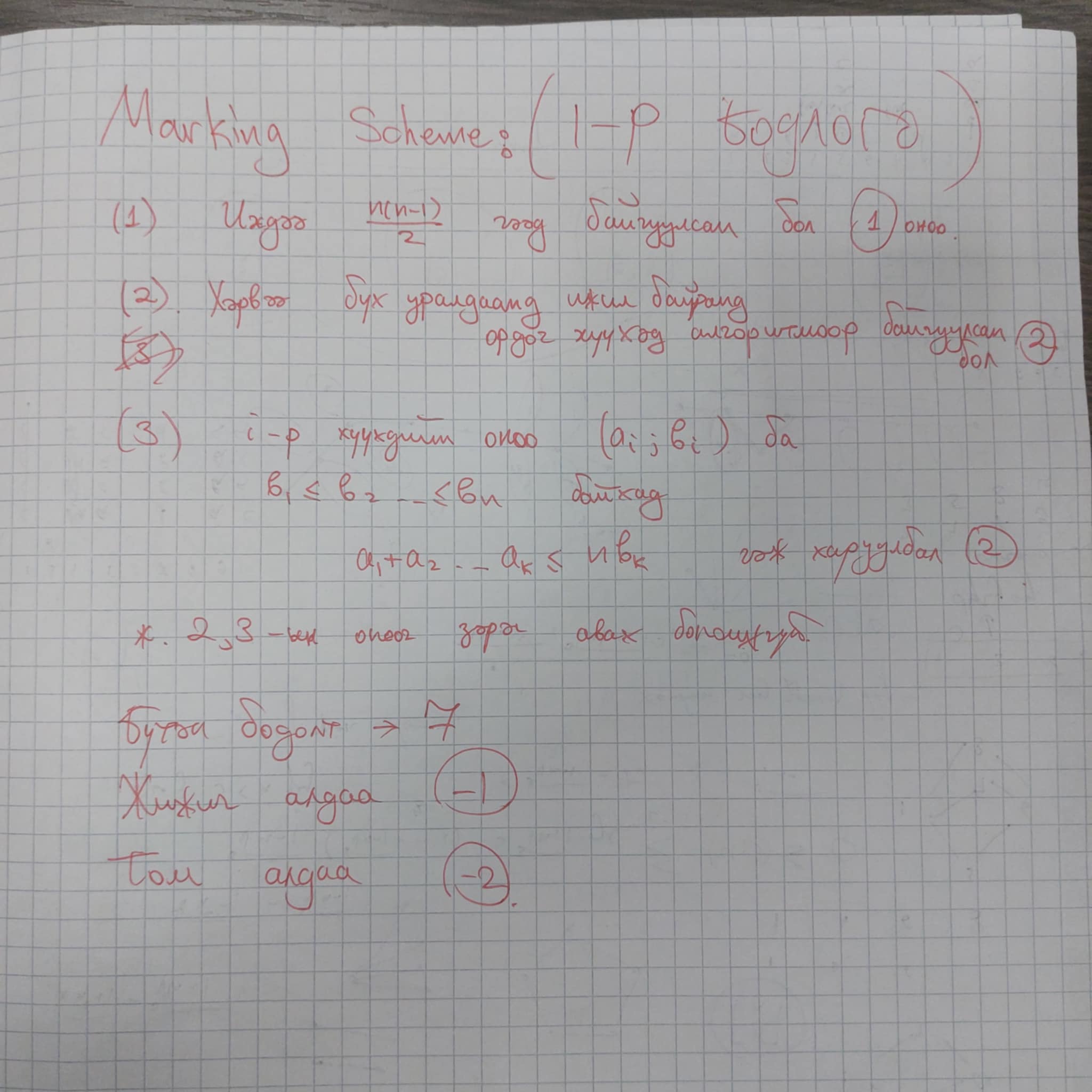 - Бүтэн бодолт 7 оноо.