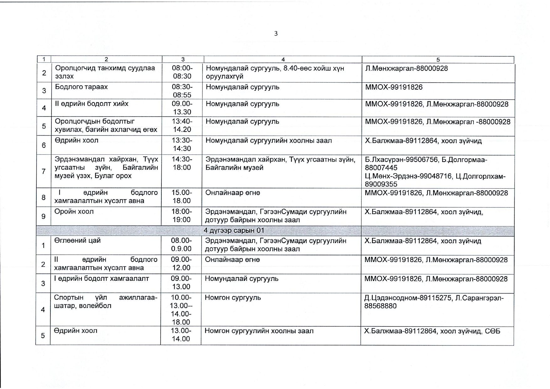 3-р сорил 4 сарын 25/26 өдрүүдэд