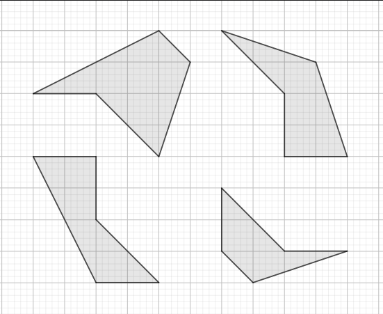 Доор өгөгдсөн дөрвөн дүрсийг нийлүүлэн үүсгэсэн шинэ дүрс нь ядаж 2 ялгаатай тэнхлэгийн тэгш хэмтэй байв. Тэгвэл тэр дүрсийг ол.