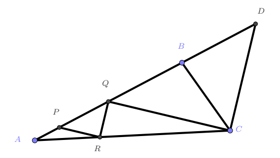 \[\dfrac{AP}{PQ}=\dfrac{AR}{RC}=\dfrac{1}{3}\] учраас $PR\parallel CQ$ болно.